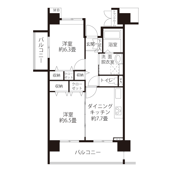 ・ファミリー向けの広さ(面積は、都心部でも平均60㎡~70㎡)