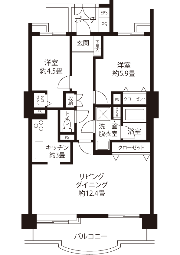 ・ファミリー向けの広さ(面積は、都心部でも平均60㎡~70㎡)
